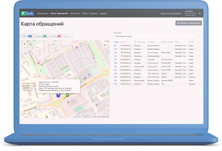 With the help of the geolocation module, the manager can easily react quickly to a critical request and assign it to the nearest engineer.